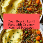 Keywords: Hearty Lentil Stew, Lentil recipe, Mashed potatoes, Vegetarian stew, Comfort food, Plant-based dinner, Healthy lentil stew