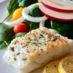 This Heavenly Halibut recipe features tender, flaky halibut fillets topped with a savory Parmesan cheese mixture, broiled to perfection for a quick and delicious seafood dinner.