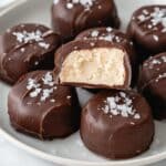 These High Protein Frozen Peanut Butter Greek Yogurt Bites are a delicious and nutritious snack combining creamy Greek yogurt, protein-rich powdered peanut butter, and a rich dark chocolate coating. Perfectly portioned and easy to make, they provide a cool, satisfying treat with a hint of savory sea salt for a flavor boost.
