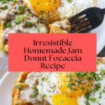 Keywords: jam donut focaccia, raspberry jam bread, sweet focaccia, homemade focaccia, jam-filled bread, brunch bread recipe