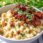 This Honey Pepper Chicken Mac and Cheese is a delightful twist on classic comfort food, featuring tender breaded chicken strips coated in a sweet and spicy honey pepper sauce, combined with creamy, cheesy macaroni loaded with bacon and fresh herbs. Perfect for a hearty family dinner or a special occasion, it’s a comforting dish that balances sweet, savory, and spicy flavors effortlessly.