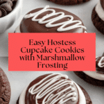 Hostess Cupcake Cookies combine rich chocolate cake flavors with fluffy marshmallow frosting and a smooth chocolate ganache. These delicious treats capture the nostalgic taste of the classic cupcake in a fun, handheld cookie form—perfect for parties or anytime you crave something sweet.