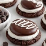 Hostess Cupcake Cookies combine rich Devil’s Food cake cookies with fluffy marshmallow frosting and a smooth chocolate ganache topping, perfectly capturing the beloved flavor of classic Hostess Cupcakes in a delightful cookie form.