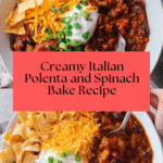 This Italian Polenta and Spinach Bake is a comforting, cheesy casserole featuring creamy polenta layered with a flavorful spinach béchamel sauce and a blend of mozzarella, fontina, and Parmesan cheeses. Slow-cooked polenta is combined with a rich spinach sauce and baked until golden and bubbling, making it a hearty vegetarian dish perfect for a cozy meal.