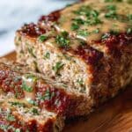 This Juicy Garlic Parmesan Chicken Meatloaf is a flavorful and tender dish combining ground chicken with savory Parmesan, garlic, and herbs. Perfectly baked and glazed with a rich buttery Parmesan sauce, it makes for a comforting yet elegant meal that’s easy to prepare.