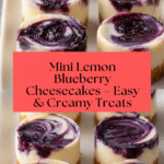 Keywords: mini cheesecakes, lemon blueberry cheesecake, blueberry swirl, lemon cheesecake, mini desserts, graham cracker crust, bite-sized cheesecake