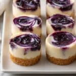Keywords: mini cheesecakes, lemon blueberry cheesecake, blueberry swirl, lemon cheesecake, mini desserts, graham cracker crust, bite-sized cheesecake