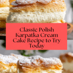 Keywords: Karpatka, Polish cream cake, choux pastry, vanilla custard, crème mousseline, traditional Polish dessert, creamy cake, layered cake