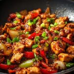 This Korean Spicy Chicken Stir Fry is a vibrant and flavorful dish featuring tender chicken breast cooked with fresh bell peppers and onions, all coated in a savory and spicy gochujang-based sauce. Quick to make and packed with bold flavors, it’s perfect for a satisfying weeknight dinner.