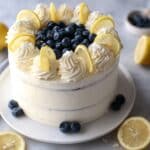 Keywords: lemon blueberry cake, lemon cake, blueberry cake, cream cheese frosting, layered cake, summer cake, fruit cake