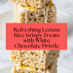 Keywords: Lemon Rice Krispy Treats, Lemon dessert, Marshmallow bars, Citrus snack, White chocolate drizzle, Easy no-bake dessert