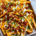 Keywords: loaded fries, cheesy bacon fries, baked fries, ranch fries, comfort food, easy appetizer