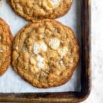 Keywords: marshmallow crispy cookies, browned butter cookies, rice krispie cookies, chewy cookies, salty sweet cookies