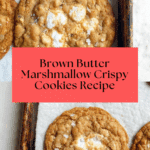 These Marshmallow Crispy Cookies combine the nutty flavor of browned butter with the sweet crunch of rice krispie cereal and the gooey delight of mini marshmallows. Finished with a sprinkle of flaked salt, these cookies offer a perfect balance of chewy, crispy, and salty-sweet textures.