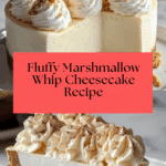 This Marshmallow Whip Cheesecake is a light, fluffy, no-bake dessert featuring a crunchy graham cracker crust and a creamy, sweet filling made with cream cheese and marshmallow fluff. Perfectly chilled and topped with fresh berries, mini marshmallows, or chocolate drizzle, it offers a delightful texture and rich flavor without the need for baking.