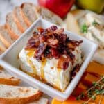 - Serve: Provide extra bacon pieces around the cheese for scooping. Optionally, drizzle with maple syrup, honey, or hot honey for added sweetness and heat. Serve alongside the crostini.