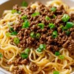 Keywords: Mongolian beef noodles, ground beef recipe, quick noodle dish, Asian stir fry noodles, beef and garlic sauce