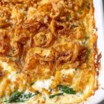 Store leftovers covered in the refrigerator for up to 3 days. Reheat individual portions in the microwave until warmed through, or reheat the whole dish covered with foil in a 350°F oven until hot. The crispy onions may lose some crunch after storing but can be refreshed under a broiler for a minute.