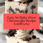 This no-bake Oreo cheesecake is a luscious and easy dessert perfect for any occasion. With a rich Oreo crust and a creamy filling studded with cookie pieces, it satisfies your sweet tooth without turning on the oven.