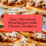 These Old School Pizza Burgers combine the best of two comfort foods: juicy seasoned ground beef with flavorful pizza sauce, all topped with melted sharp cheddar cheese on toasted burger buns. Baked to perfection, they are perfect for a fun family meal or casual gathering.