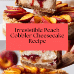 This Peach Cobbler Cheesecake combines luscious roasted peaches layered within a creamy cheesecake set on a crispy graham cracker crust, topped with a crunchy cinnamon streusel. Inspired by the comforting flavors of peach cobbler, this dessert features roasted peach fillings baked into the cheesecake and finished with a sweet cinnamon peach topping and streusel crumble. Perfect for summer and fall gatherings, it offers a rich, fruity, and textured indulgence that delights cheesecake lovers and fruit dessert enthusiasts alike.