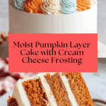 Keywords: pumpkin layer cake, cream cheese buttercream, fall dessert, pumpkin spice cake, layered cake recipe, autumn baking