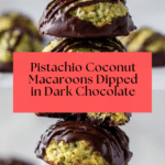 These Pistachio Coconut Macaroons are delicate, chewy treats combining the nutty crunch of pistachios with the tropical flavor of shredded coconut. Enhanced with fragrant rosewater and dipped in rich dark chocolate, these macaroons offer a gourmet twist on a classic cookie that’s perfect for special occasions or an elegant snack.