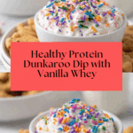 This Protein Dunkaroo Dip is a healthy and delicious twist on a nostalgic classic. Made with non-fat plain Greek yogurt and vanilla whey protein powder, it offers a high-protein, low-fat option for a dip that’s perfect for snacks or parties. Lightly sweetened and topped with colorful rainbow sprinkles, this dip is easy to make and can be enjoyed with fruit, crackers, or pretzels.