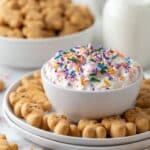- Serve and garnish: Optionally top with more sprinkles before serving. Serve immediately as a dip for fresh fruit, crackers, or pretzels.