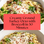 Keywords: ground turkey orzo, quick dinner, one pan meal, creamy orzo, healthy weeknight dinner, broccoli and turkey recipe