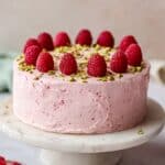 This Raspberry Pistachio Cake combines nutty pistachio layers with tangy raspberry jam and a luscious raspberry buttercream. It’s a beautiful and flavorful dessert perfect for celebrations or a special treat.
