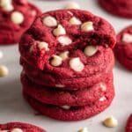 Delight in these soft, chewy Red Velvet Cookies made with rich cocoa, vibrant red food coloring, and sweet white chocolate chunks. Perfect for a festive treat or anytime you crave a classic red velvet flavor in cookie form.