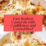 Keywords: Reuben Casserole, low-carb casserole, corned beef casserole, keto Reuben, roasted cauliflower casserole, Swiss cheese casserole, sauerkraut recipe, low sugar casserole
