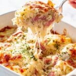 Keywords: Reuben Casserole, low-carb casserole, corned beef casserole, keto Reuben, roasted cauliflower casserole, Swiss cheese casserole, sauerkraut recipe, low sugar casserole