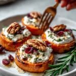PrintRoasted Sweet Potato Rounds with Herbed Ricotta, Walnuts, and Cranberries Recipe