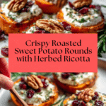 Roasted Sweet Potato Rounds are a delightful appetizer or snack that combines sweet, savory, and tangy flavors in every bite. With a creamy herbed ricotta topping and crunchy walnuts, this dish is both satisfying and elegant.