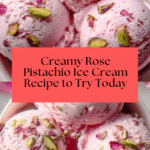 This Rose Pistachio Ice Cream is a delicate and creamy frozen dessert that combines floral rose water with crunchy roasted pistachios. Made with a rich custard base of heavy cream, whole milk, and egg yolks, it offers a perfectly balanced sweetness and a unique, aromatic flavor that makes it an elegant treat for any occasion.