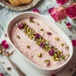 Rose Tiramisu is a delicate and aromatic twist on the classic Italian dessert, infused with fragrant rose syrup, rose water, and rose essence. Layers of ladyfinger cookies soaked in a creamy rose milk mixture alternate with luscious mascarpone and whipped cream, creating a floral, rich, and elegant treat. Garnished with edible rose buds and silvered pistachios, this dessert not only tastes divine but also looks stunning, perfect for special occasions or a romantic indulgence.