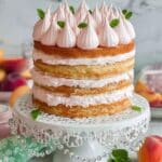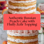This Russian Peach Cake is a delicate and elegant dessert featuring light sponge layers, luscious peach preserves, and fluffy whipped cream. Finished with a unique zefir marshmallow and fresh peaches, it offers a perfect balance of sweetness and fruitiness that’s sure to impress.