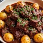 - Serve: Transfer beef and potatoes to a serving platter. Spoon extra sauce over the top, sprinkle with fresh parsley garnish, and serve warm for a hearty meal.