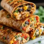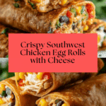 These Southwest Chicken Egg Rolls are a delicious fusion appetizer combining tender chicken, black beans, corn, fresh vegetables, and melted Monterey Jack cheese wrapped in crispy egg roll wrappers. Perfectly seasoned with chili powder, cumin, and jalapeño for a mild kick, they can be fried or baked to golden perfection and served with your favorite dipping sauces like salsa, guacamole, or sour cream.