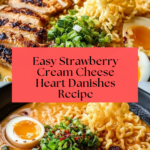 These Strawberry Cream Cheese Heart Danishes are delightful puff pastry treats perfect for breakfast or dessert. Featuring a creamy, slightly sweetened cream cheese filling tinted with a hint of red food coloring and topped with fresh diced strawberries, these danishes bake up golden and flaky, making a charming and delicious heart-shaped pastry that’s both easy to prepare and irresistibly tasty.