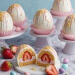 Keywords: strawberry shortcake, Easter egg bombs, white chocolate, no-bake dessert, strawberry dessert, festive treats, holiday dessert