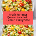 This vibrant Summer Quinoa Salad is a refreshing and nutritious dish perfect for warm-weather meals. Packed with protein-rich quinoa, fresh cucumber, cherry tomatoes, chickpeas, and sweet corn, it is tossed in a zesty homemade lemon Dijon vinaigrette with hints of honey and basil. This salad is quick to prepare, colorful, and ideal as a light lunch or a healthy side dish.
