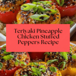 Teriyaki Pineapple Chicken & Rice Stuffed Peppers Delight is a vibrant and flavorful dish that combines juicy chicken, sweet pineapple, savory teriyaki sauce, and fluffy rice stuffed inside colorful bell peppers. Baked to perfection, this tropical-inspired meal offers a perfect balance of sweet and savory flavors with a hint of freshness from green onions and an optional cheesy finish.