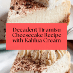 This Tiramisu Cheesecake combines the rich, creamy decadence of classic tiramisu with the creamy texture of cheesecake. Featuring a buttery vanilla wafer crust, a luscious mascarpone and cream cheese filling, layers of coffee-soaked ladyfingers, and a Kahlua-infused whipped cream topping, this no-bake dessert is perfect for impressing guests or indulging in a special treat.