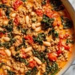 Tuscan Turkey and White Bean Skillet is a hearty and flavorful one-pan meal packed with ground turkey, creamy white beans, and nutritious kale. Enhanced with aromatic herbs and spices, fire-roasted tomatoes, and a touch of cream and Parmesan, this dish combines rustic Italian flavors with wholesome ingredients for a comforting dinner perfect for any night of the week.