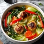 This Vietnamese Chicken Meatball Soup with Bok Choy is a comforting and flavorful dish perfect for any day. Tender chicken meatballs simmered in a savory tomato and vegetable broth create a wholesome, nourishing meal that’s easy to prepare and enjoy.
